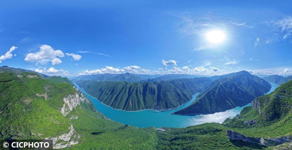 ↑2026年4月16日在重庆市巫山县拍摄的长江三峡巫峡段景色。(无人机拼接照片)CICPHOTO/谭昌藩 摄