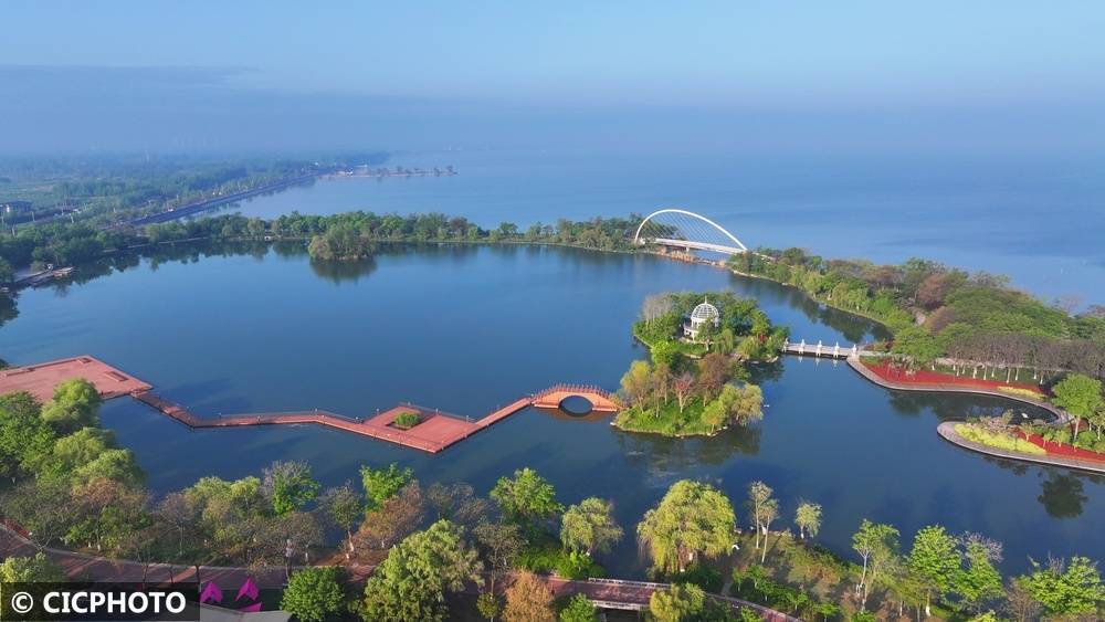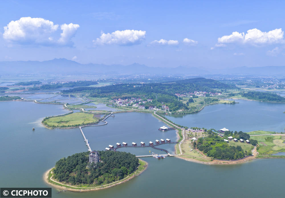 ↑2026年4月25日拍摄的安徽省无为市牛埠镇竹丝湖景区一景。(无人机照片)CICPHOTO/鲁君元 摄