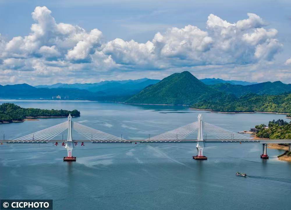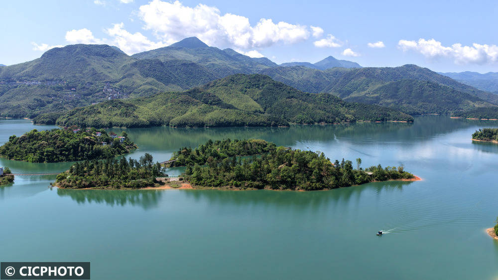 ↑2026年4月25日拍摄的安徽省黄山市黄山区太平湖一景。(无人机照片)CICPHOTO/罗继胜 摄