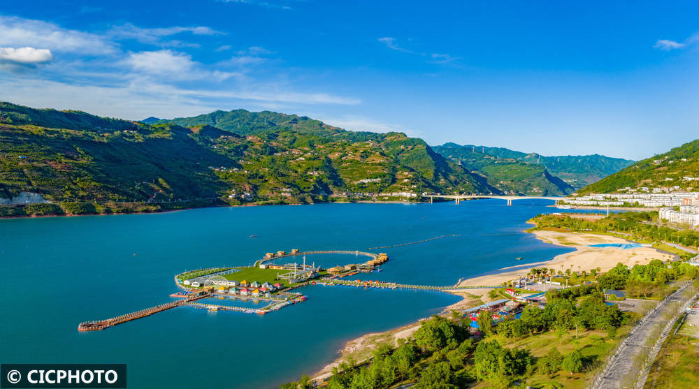 ↑2026年4月19日在云南省昭通市绥江县金沙江畔拍摄的景色。(无人机照片)CICPHOTO/曾三东 摄