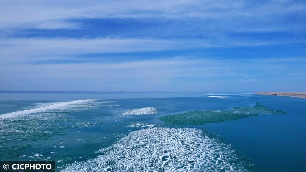↑2026年4月23日在新疆福海县乌伦古湖国家湿地公园拍摄的景色。(无人机照片)CICPHOTO/阿尔达克·拜斯汗 摄