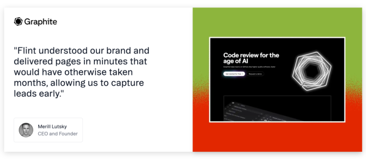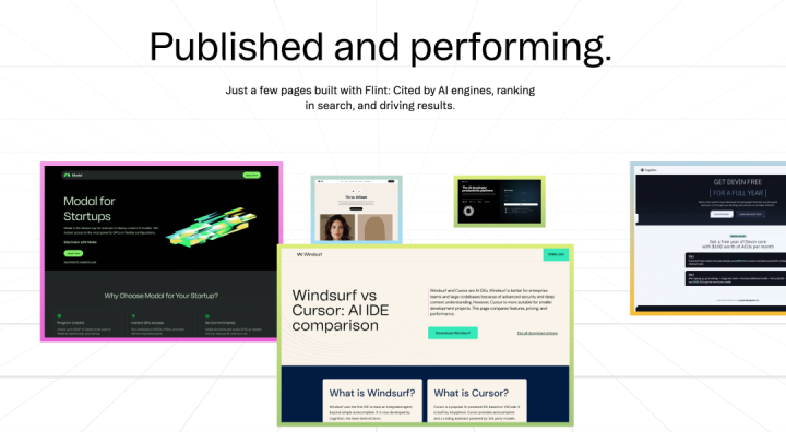 Flint的客户已经看到了这种效果。他们报告说,使用Flint生成的页面在SEO和AI-SEO排名中都名列前茅。这不是巧合,而是因为Flint的方法天然适合AI时代的发现性要求。它能快速创建针对性强、内容丰富、结构清晰的页面,正是AIagent在抓取和理解网站内容时所需要的。