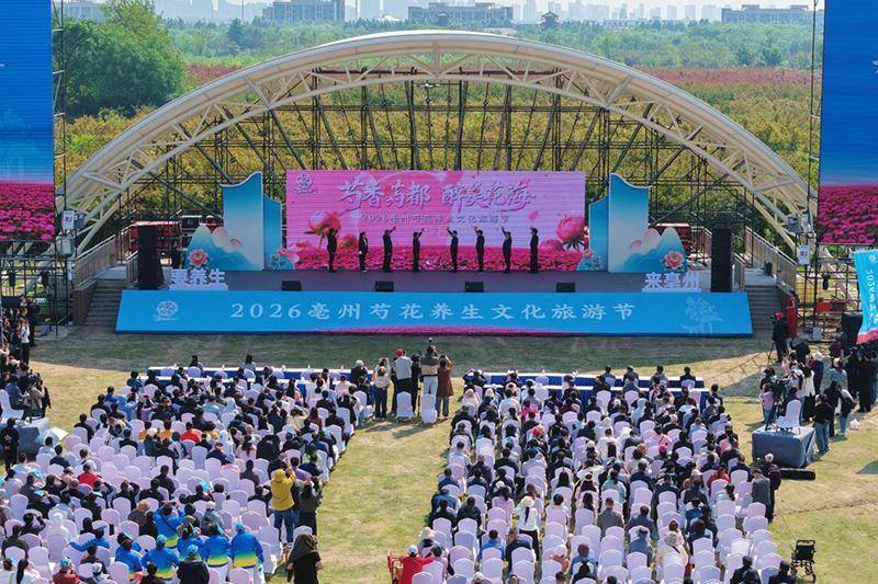 人民网亳州4月30日电 (记者胡雨松)4月30日上午,2026亳州芍花养生文化旅游节开幕式在华佗百草园阳光大草坪举行。本届开幕式以“芍香药都·醉美花海”为主题,通过文化展演、项目发布与线路推介,向游客展示亳州“中华药都”的文化底蕴与养生特色。