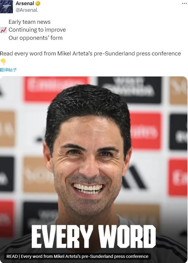 阿尔特塔出席了赛前新闻发布会,我们只看关键的几个内容。