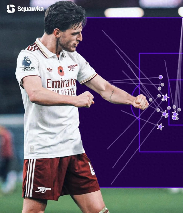 Squawka统计,赖斯2025年在各项赛事创造了23次重大机会,比任何其他英超球员都多。